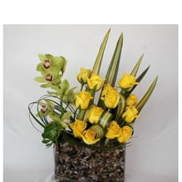 Price: $106.40Yellow Tulips and Cymbidiums